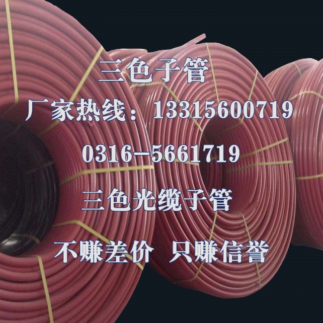 *管重量輕、*度*、*沖擊、耐腐蝕、管壁光滑、磨擦系數小,穿纜容易,施工工期***;電絕緣*能*,使用壽命長達50年以上,經久耐用,線路運行*;三*光纜*管可采用盤管形式,管段長、接頭少、安裝簡便;管材可做成各種顏色,以示區分,