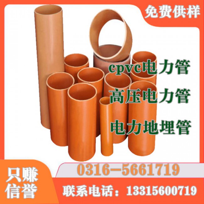 隨著經濟發展的突飛猛進,電力電纜已從架空進入到埋地。佰杭塑業為適用市場需要, cpvc電力電纜保護管,cpvc電力管是以CPVC樹脂為母料,加入抗沖劑,穩定劑等輔料經高速擠出而成的新型埋地式高壓電力電纜保護管。並根據不同的應用環境分為pvc高壓電纜保護管,pvc普通電纜保護管,並已電力公司供過*多貨。